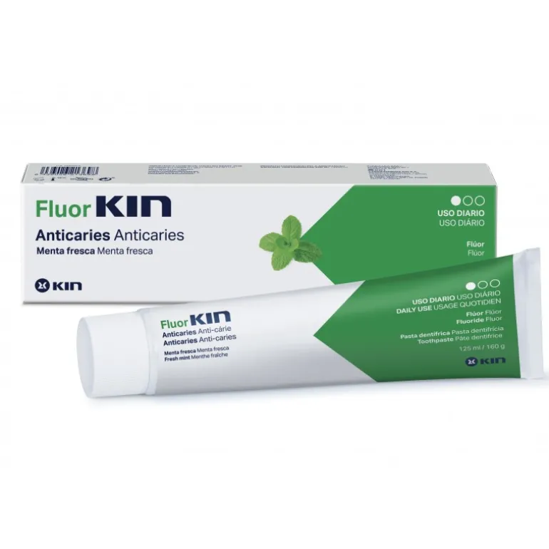 Fluorkin Anticaries pasta dentífrica sabor a Menta Fresca.