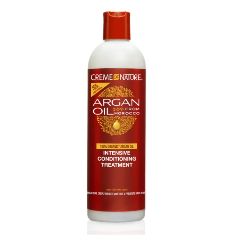 Después de lavar el cabello con el champú sin sulfatos Creme of Nature® Argan Oil from Morocco Moisture & Shine Shampoo, aplique una cantidad generosa sobre el cabello y péinelo para distribuirlo uniformemente.