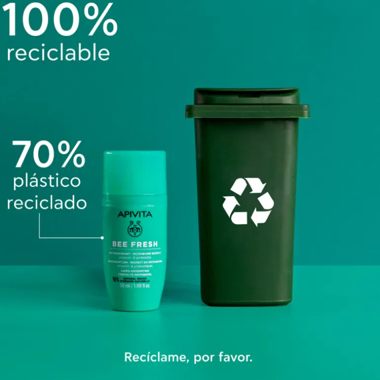Un desodorante ligero, no pegajoso, sin alcohol y sin aluminios enriquecido con propóleo patentado y probióticos.