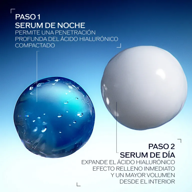 Paso 1 – Infill Serum Noche: Contiene ácido hialurónico de alto peso molecular compactado para que pueda penetrar intensamente en la epidermis** durante la noche.