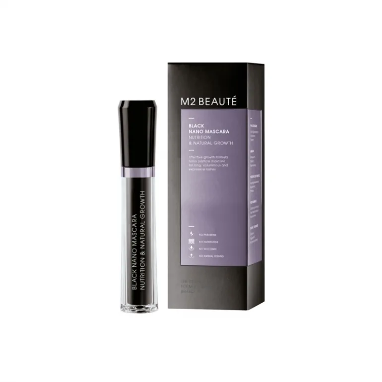 M2 Beauté Black Nano Mascara estimula el crecimiento de tus pestañas al tiempo que aporta mayor densidad y volumen.