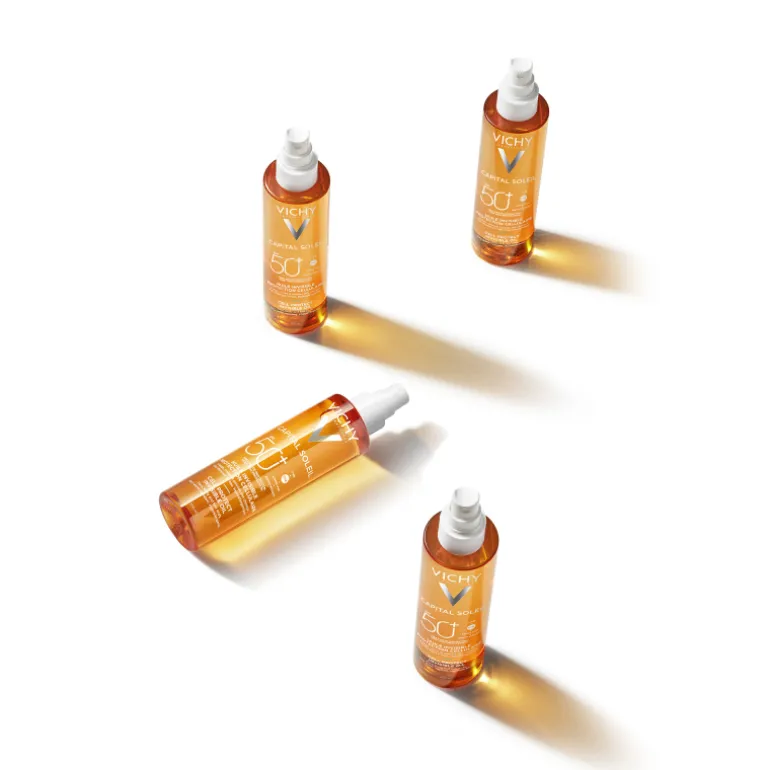Vichy, Aceite Invisible Cell Protect SPF50+ protege la piel del daño solar a nivel celular con una sensación de aceite seco ultrasensorial. Para el rostro, el cuerpo y las puntas del cabello.