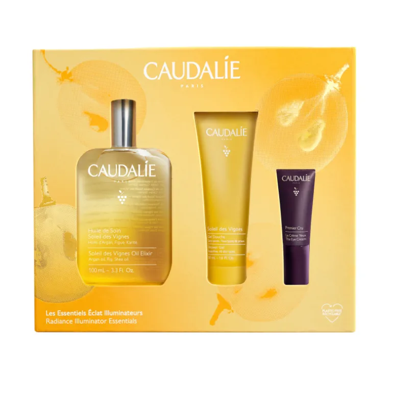 En este cofre encontrarás: el Aceite de Tratamiento Soleil des Vignes + 2 productos complementarios en formato de viaje de regalo.