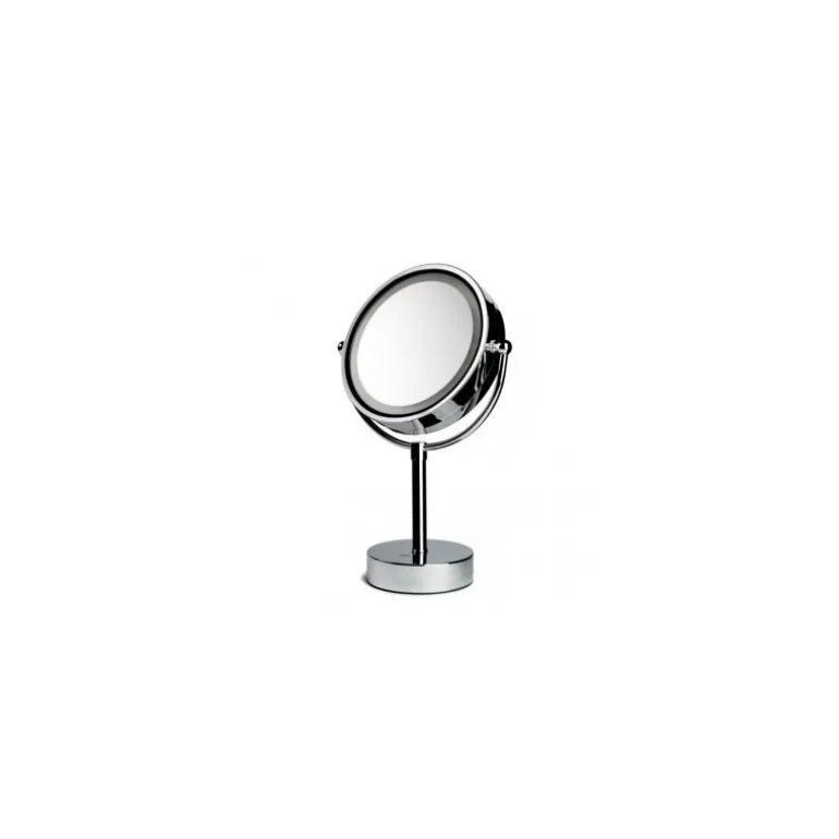 Espejo plateado de mesa con lámpara LED. Tamaño: 27x14x39. Aumento x1 o x5.