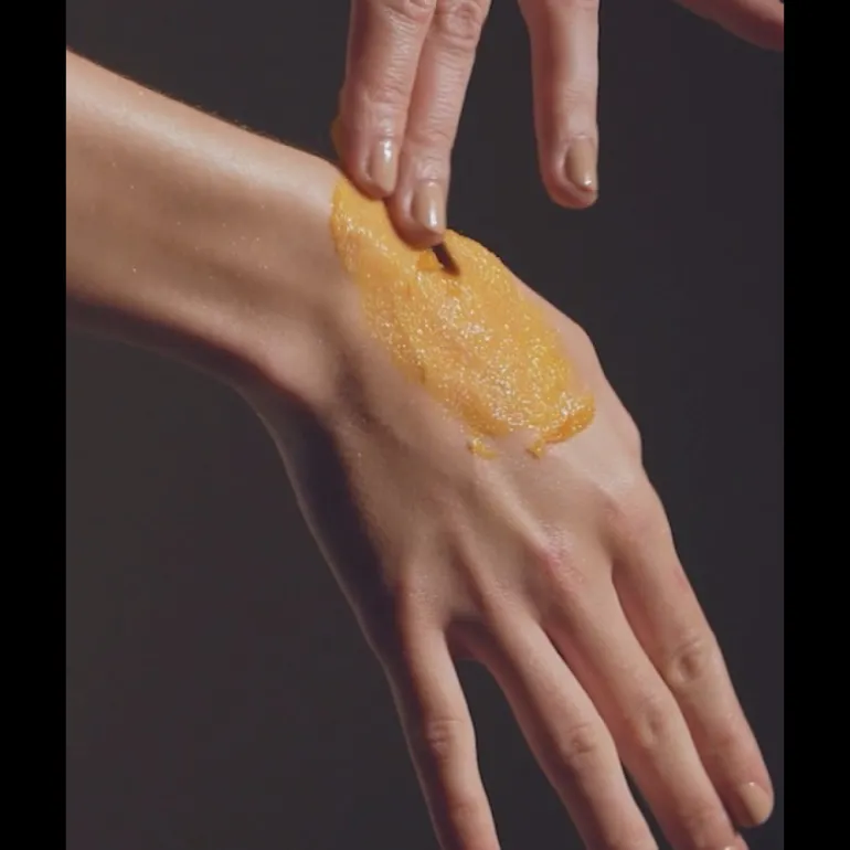 Para una exfoliación más intensa, masajee suavemente sobre la piel seca y limpia. Para una textura más cremosa y aceitosa, añada agua para disolver los cristales naturales exfoliantes.