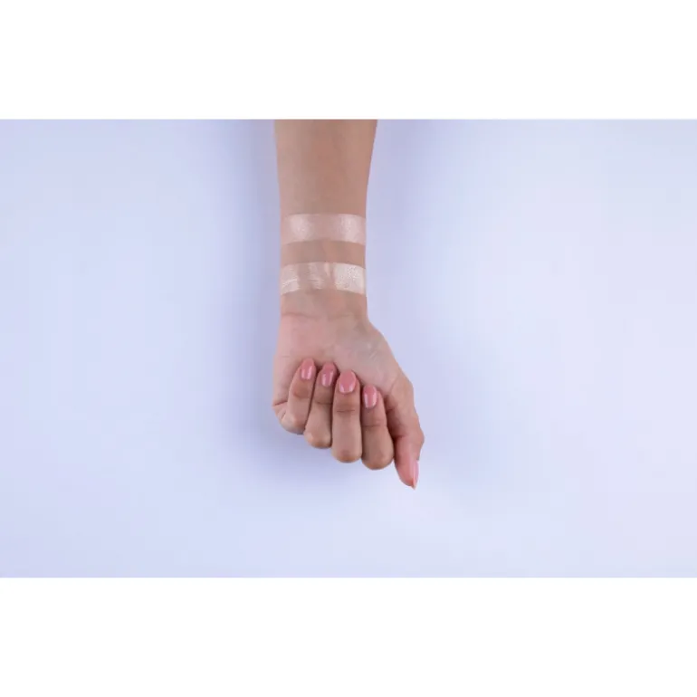 «Sedoso, con un tacto ligero y sensorial, envuelve el rostro en un velo de luminosidad con un sofisticado acabado resplandeciente. Aplicado en las zonas elevadas del rostro, como los pómulos, el puente de la nariz, el arco de las cejas y el arco de cupido, crea extraordinarios reflejos de luz.