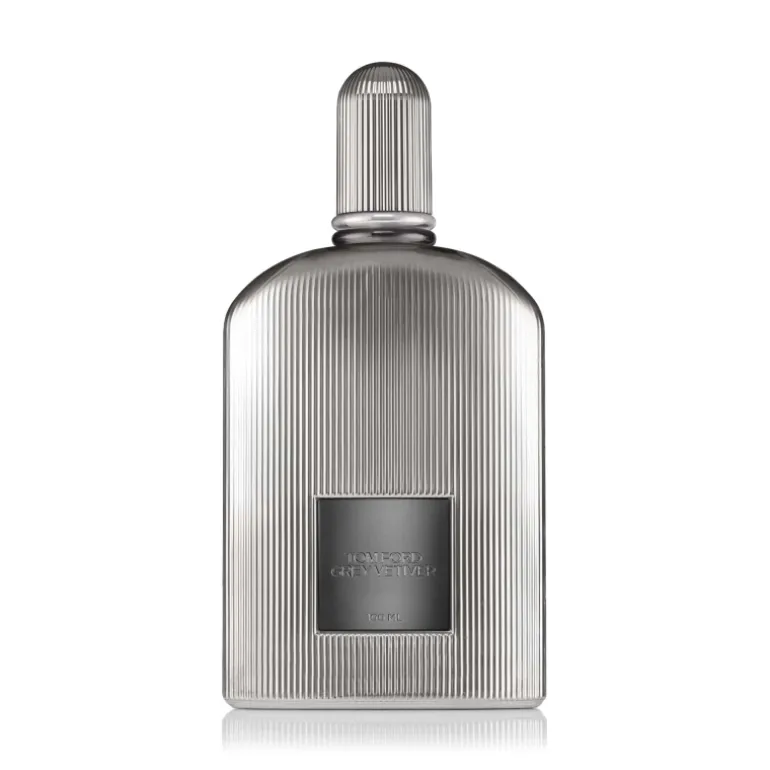 GREY VETIVER PARFUM, una versión más atrevida de la fragancia original, se inspira en la impecable sastrería y estilo de Tom Ford. Un trío de vetiveres de origen sostenible e iluminados por el sol desprenden un intenso resplandor, mientras la fresca flor de azahar da paso al azafrán, la especia más cara del mundo, que añade un matizado brillo.