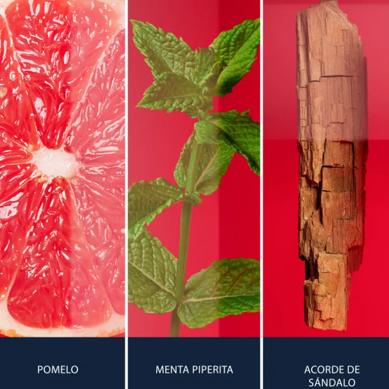 Las notas de salida de pomelo picante y lima vibrante se mezclan con la menta piperita y las bayas de Enebro en el corazón de la fragancia para proporcionar una explosión de energía.