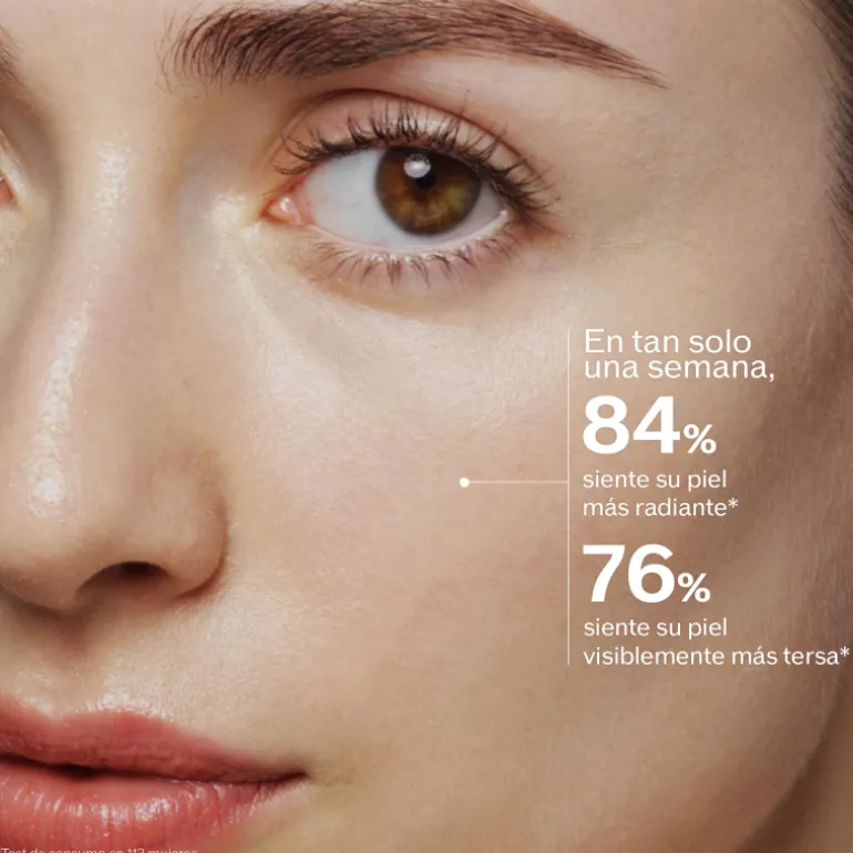 En una semana, el 84 % nota la piel más luminosa y radiante* y el 76% más tersa*.