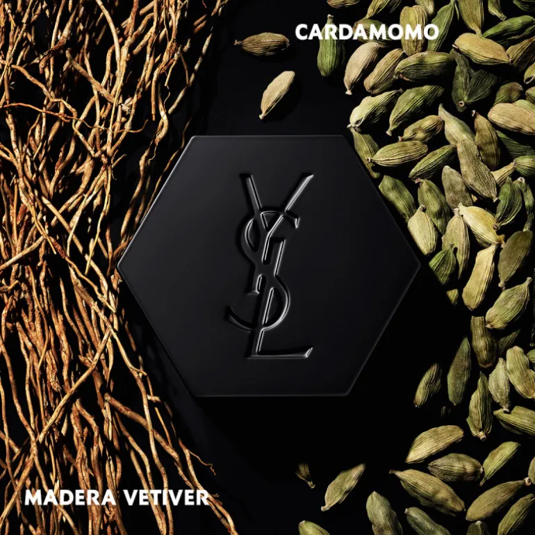 Su envolvente estela inicia con un vibrante acorde protagonizado por el cardamomo, dando lugar así a un aroma intensamente especiado y viril.