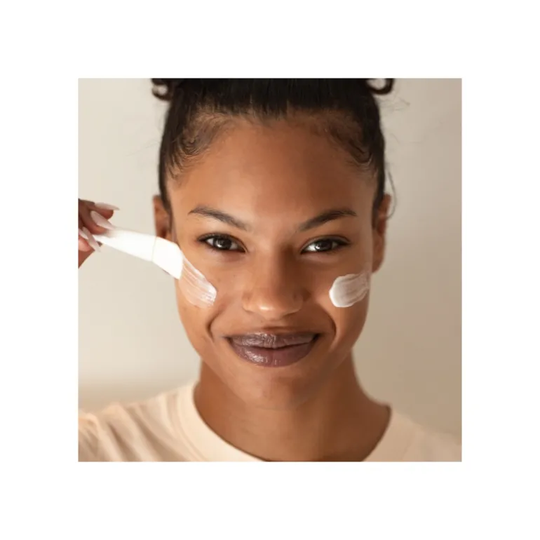 Con la piel bien seca, aplicar una fina capa con la brocha súper suave que hemos diseñado especialmente para que este momento sea, además de skincare, tu momento de autocuidado semanal.