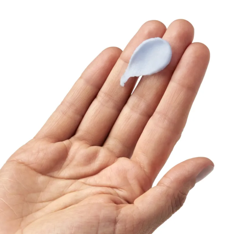 Con las yemas limpias de los dedos, masajea una cantidad del tamaño de un guisante en la piel