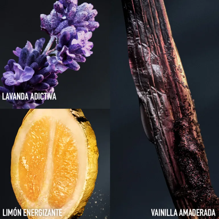 Una fragancia nacida del encuentro entre el energizante frescor del limón y el vetiver, y la atracción de una irresistible lavanda cremosa y vainilla amaderada.