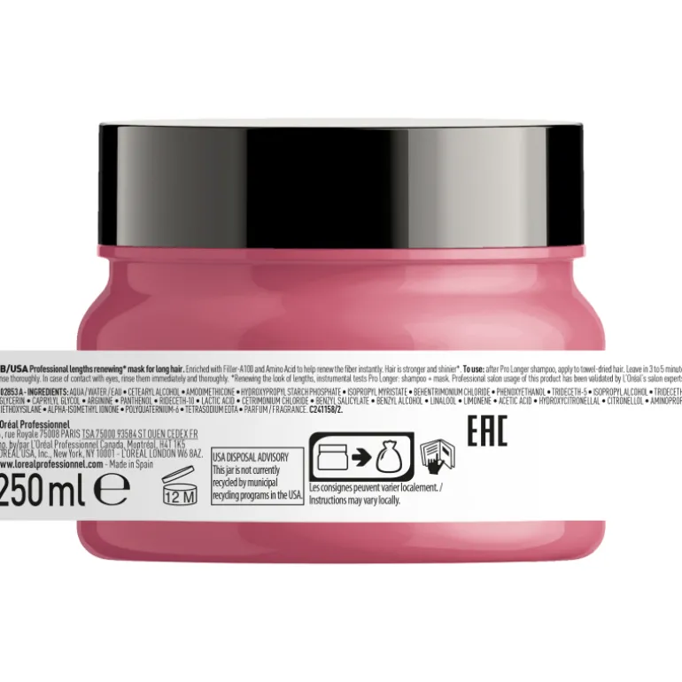 L窶儖réal Professionnel Mascarilla Pro Longer Con Filler-A100 y Aminoácido para cabellos largos con puntas finas.