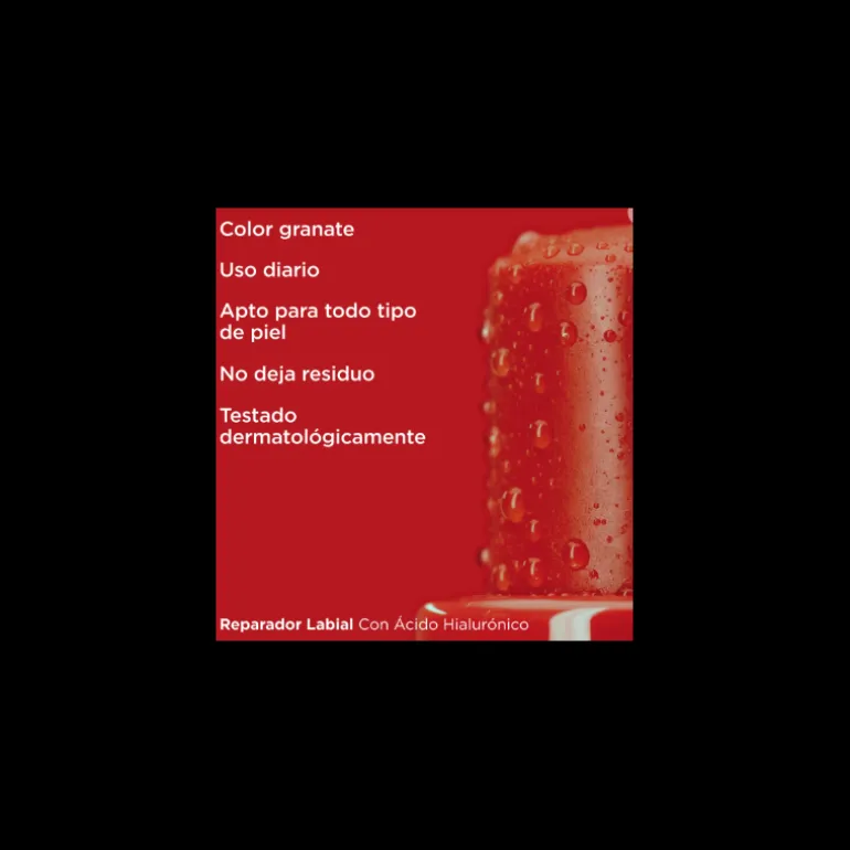 ISDIN Reparador Labial granate contiene ingredientes con propiedades antioxidantes que protegen la piel contra el daño provocado por los radicales libres provenientes de factores como la radiación UV o la polución.