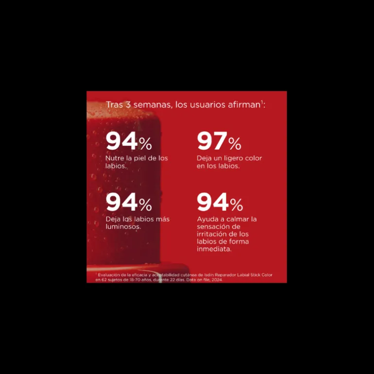 Protege, repara y dale un toque de color a tus labios con ISDIN Reparador Labial granate, el stick que proporciona hasta 24 horas de hidratación intensa gracias a su contenido en ácido hialurónico. Nutre y alivia la sensación de sequedad e irritación.