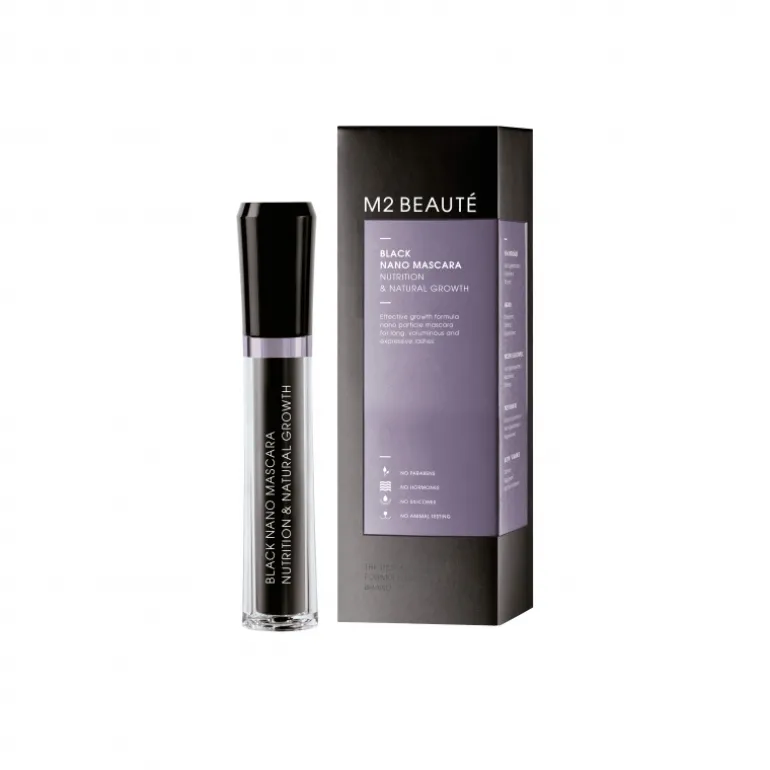 M2 Beauté Black Nano Mascara: Pestañas un 20% más largas y expresivas y 50% más fuertes.
