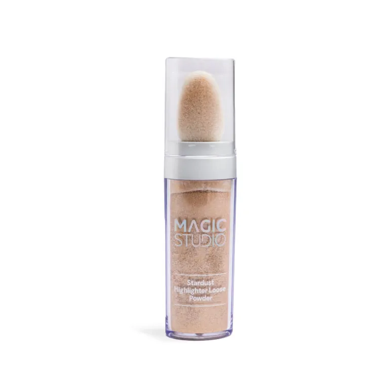 Descubre el deslumbrante brillo de Magic Studio Shimmer Powder, disponible en dos cautivadores tonos: champagne rosado y cobre dorado.