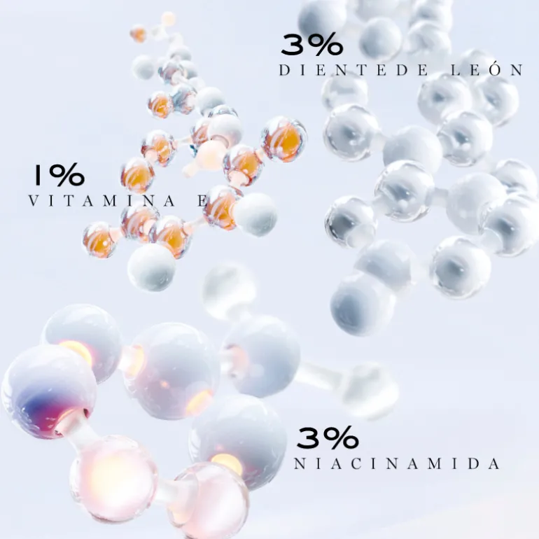 La fórmula patentada está potenciada por un complejo activo con 3% de niacinamida, 1% de vitamina E y 3% de extracto de diente de león para combatir el fotoenvejecimiento en tan solo un mes.