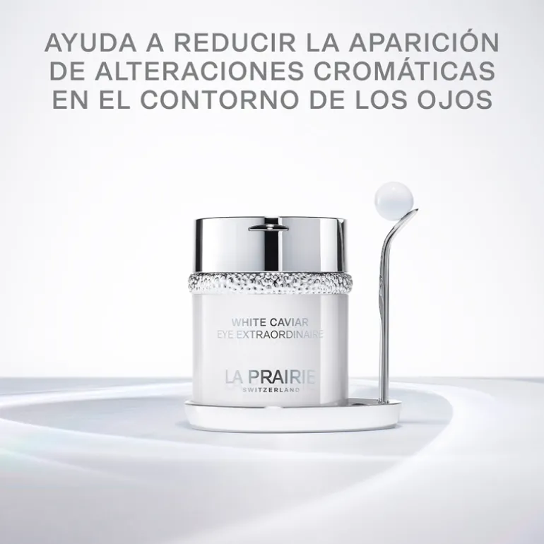 La crema La Prairie White Caviar Eye Extraordinaire tiene un efecto transformador que combate las manchas e imperfecciones de la piel, iguala su tono y la ilumina con la luz contenida en su fórmula enriquecida con Lumidose, el inhibidor de tirosinasa más potente, la enzima responsable de la formación de melanina.