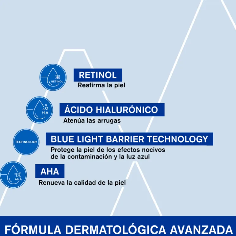 Este sérum alisador reafirmante intensivo actúa simultáneamente sobre las arrugas, la firmeza y sobre las agresiones diarias de la piel: luz azul, rayos UV, contaminación, estrés, fatiga.