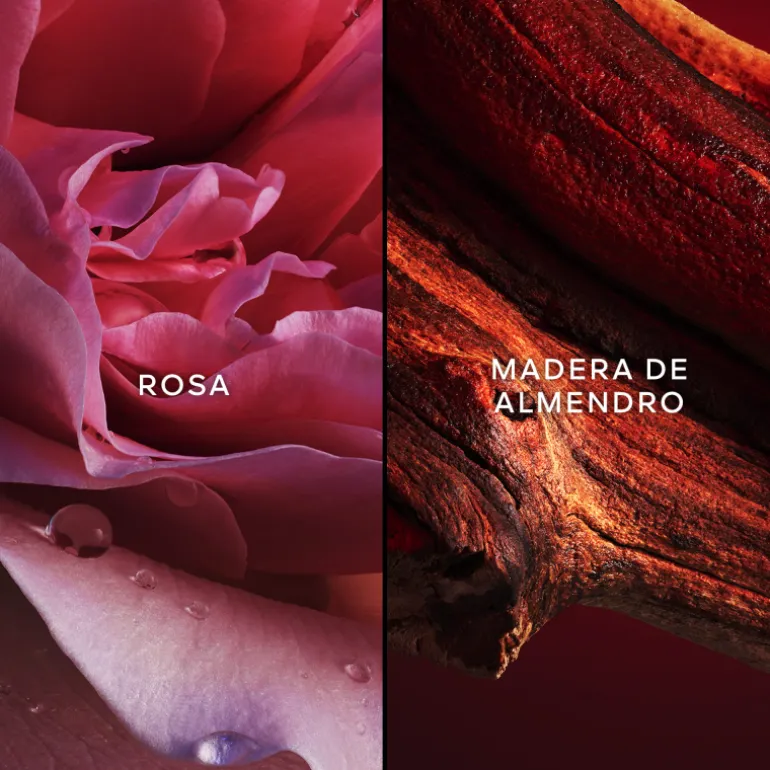 Las bayas de grosella negra combinan a la perfección con la madera de almendro, al tiempo que la rosa transparente suaviza el despliegue de la mimosa. En el corazón, se percibe el pálpito de las flores de mimosa. Las notas de fondo mezclan los acentos sensuales de la semilla de hibisco con la suavidad de la madera de almendro.