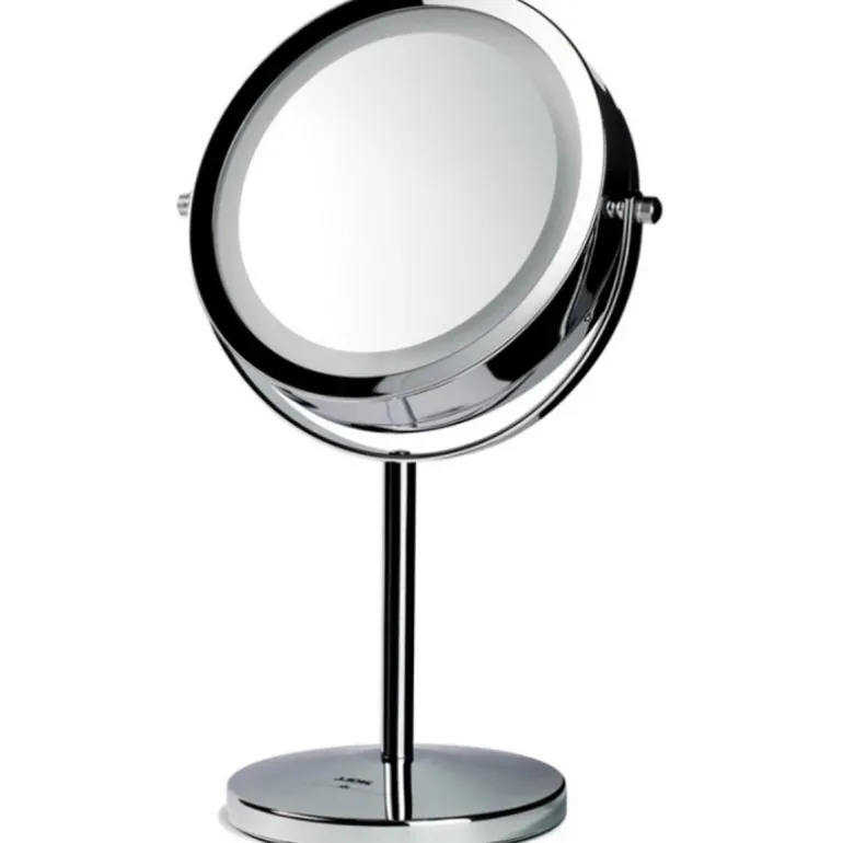 Espejo plateado de mesa con lámpara LED. Tamaño: 20,5×13,5×3.