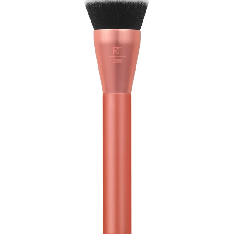 Real Techniques Glow Round Base. Brocha de maquillaje con el nuevo cabezal plano difumina la base de maquillaje para conseguir una base uniforme y suave con un acabado «air-touched»