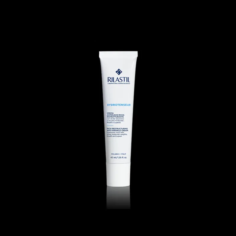 Rilastil Hydrotenseur Crema Antiarrugas Rica, crema de textura rica, específica para hidratar en profundiad, además de prevenir y tratar los primeros signos de envejecimiento cutáneo en pieles secas.