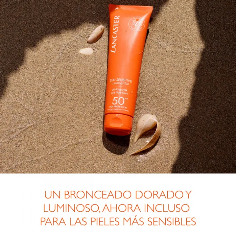 ¿Y si incluso las pieles más sensibles pudieran lograr una luminosidad dorada duradera mientras se benefician de nuestra mejor protección solar, evitando el enrojecimiento y la sensación de incomodidad? La gama Sun Sensitive de Lancaster combina nuestra Full Light Technology, que actúa en el 100% del espectro solar* para obtener la protección más completa, junto con nuestro nuevo Complejo Sunsicalm de origen natural que calma y preserva la piel sensible de los daños inducidos por el sol y nuestro Complejo Activador del Bronceado de origen natural para un bronceado luminoso y duradero. Ahora también limpias y respetuosas con el océano, las fórmulas Sunsicalm Sensitive permiten disfrutar del sol con una protección eficaz*, respetando tanto la piel como el océano.