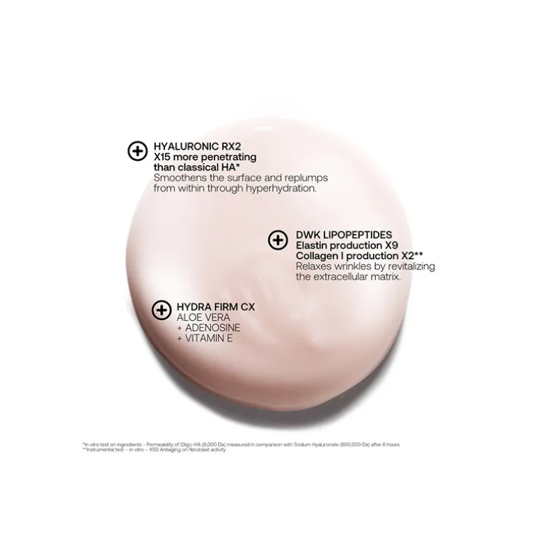 Ácido hialurónico RX2: 15 veces más penetrante que un ácido hialurónico clásico*. Alisa la superficie y rellena en profundidad mediante una superhidratación.