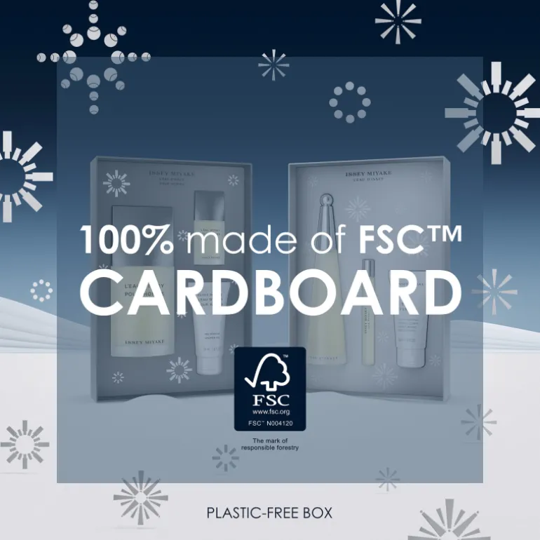 Con un enfoque responsable, los sets de Issey Miyake son 100% de cartón para minimizar su impacto medioambiental.