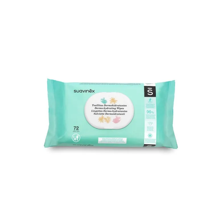 Pack 72 unidades de toallitas húmedas dermohidratantes de Suavinex. Su extrema suavidad permite limpiar fácilmente la delicada piel del bebé.