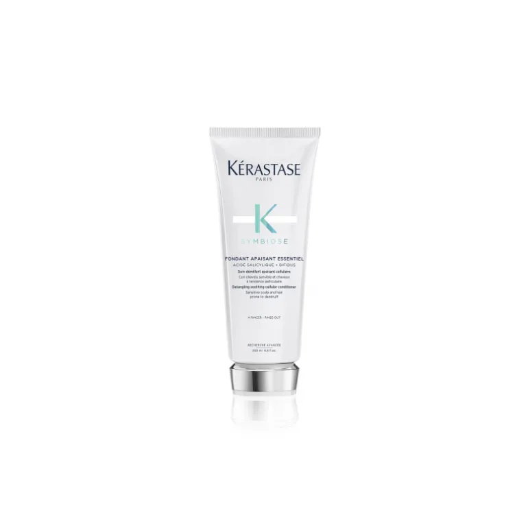 El Fondant Apaisant Essentiel de la gama Symbiose de Kérastase es un tratamiento desenredante y calmante pensado para cueros cabelludos sensibles y propensos a la caspa.