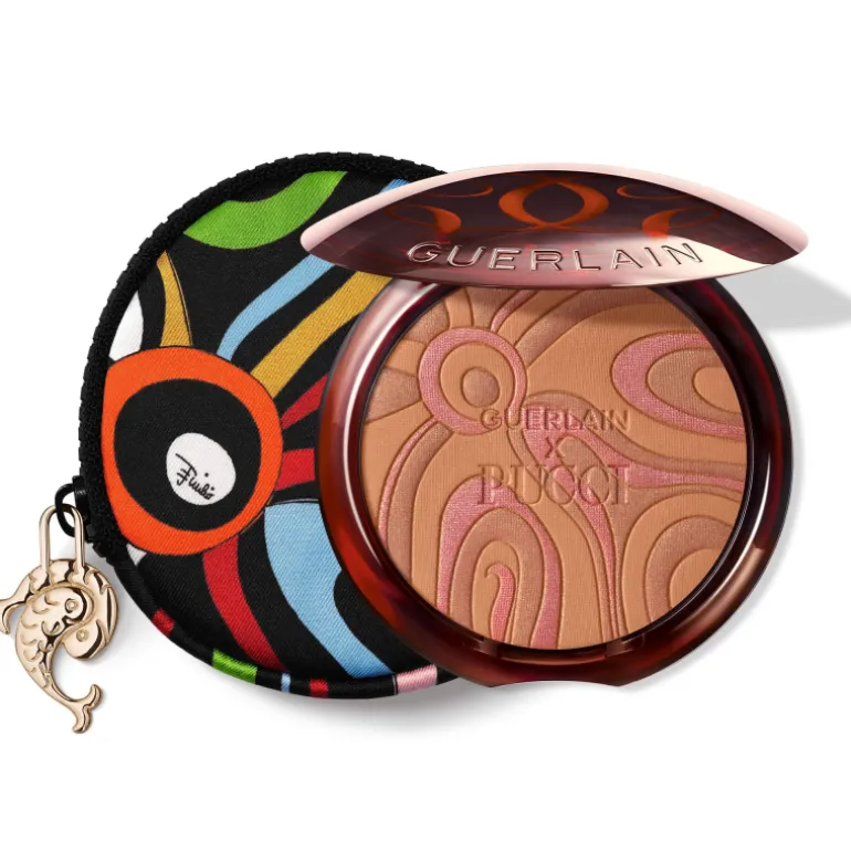 Camille Miceli, directora artística de Pucci, y Violette, Directora Creativa de Maquillaje de Guerlain, fusionan sus talentos para ensalzar los míticos polvos Terracotta con el emblemático motivo Marmo de Pucci. La combinación de dos tonos emblemáticos pulverizados con nácares rosados en un estuche de Alta Costura.