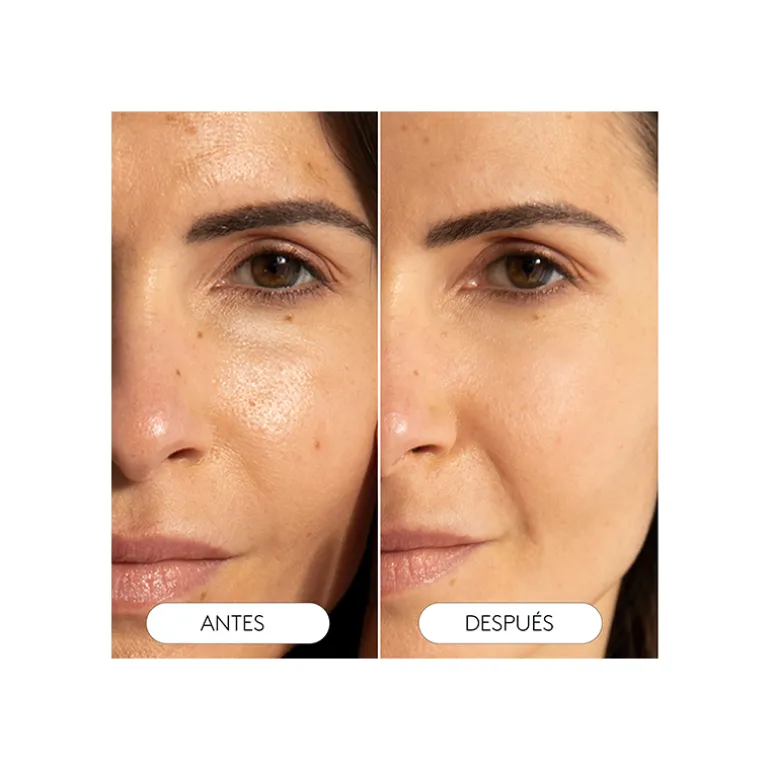aumenta la nutrición de la piel en un 14%, reduce las manchas en un 10%, estimula la producción de colágeno resultando una piel más firme y elástica.