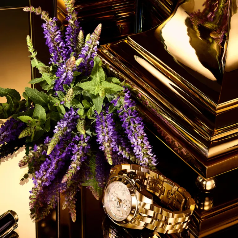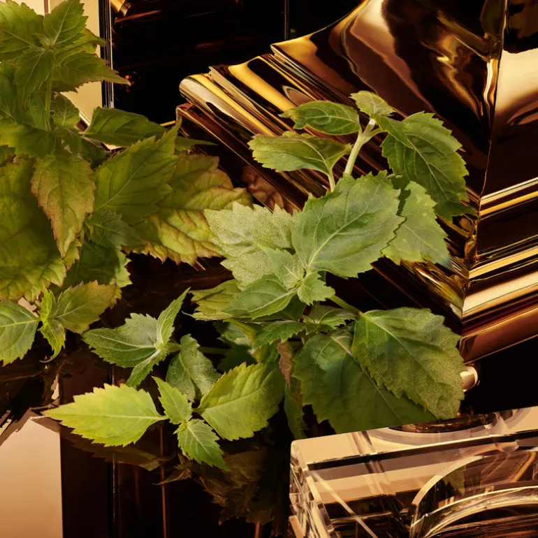 La fragancia amaderada y especiada se abre con la nota verde de la salvia sclarea.