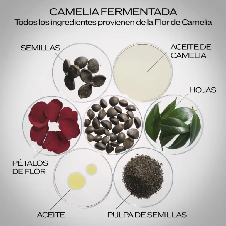 Incorpora el nuevo y exclusivo Poder Fermentado Patentado de la Camelia+(2), que ayuda aún más a mejorar las defensas internas de la piel eliminando rápidamente las células envejecidas antes de que aparezcan nuevos signos de envejecimiento.