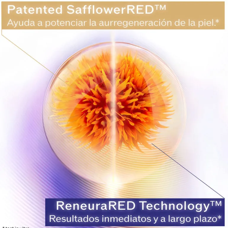 Contiene la patente SafflowerRED邃ón, que ayuda a estimular la red de nutrientes y la autorregeneración de la piel* y a combatir la pérdida de firmeza, las arrugas profundas y las manchas.